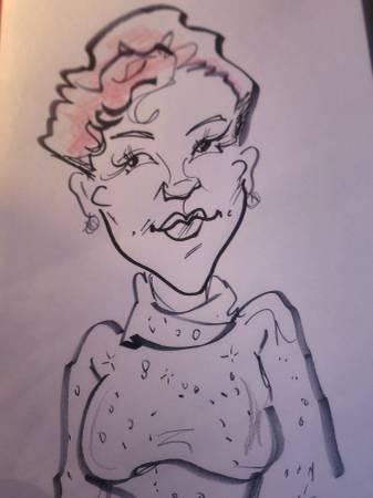 It takes her only 1 -3 minutes to draw a caricature.