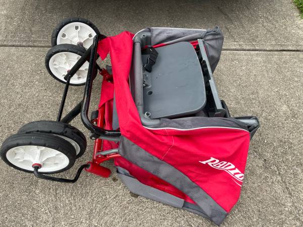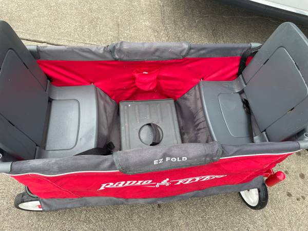 This wagon is so neat. Could be used for two kids or even for hauling stuff at a flea market. Easy to transport. Folds up. Price reduced to $40.
