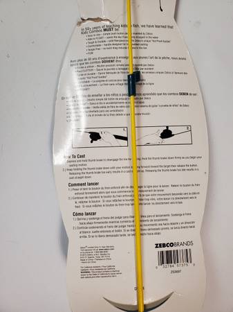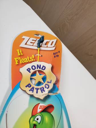 This listing is for a New Zebco Pond Patrol Fishing Rod/Pole. Ages 4+. It floats. Package has a small tear. Excellent new condition.