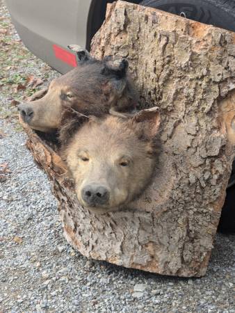 This display features the taxidermy mounted heads from two black bear. This is an old display so there is some hair loss. But when else will you find something this Cool!