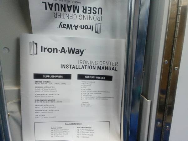 New in open box. Iron-A-Way Built-in ironing center. 46" Swiveling ironing board With built-in electrical system and hot iron storage. AE46FWU Retails over $700 selling for $250. Or trade. Call or...
