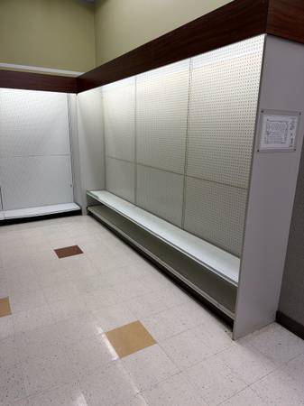 For sale is Gondola Shelving, Wall Units, Double Sided Units, End Caps, Pharmacy Shelves, Store Display Shelving and Stands. Gondola Units are a mixture of 5' and 6' Tall and Shelves are roughly all 12" Deep.