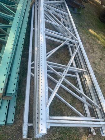 Gray rack is a complete set 5 uprights With 16 beams. I believe they are 16 feet long . Asking $400 I also got 9 or 10 green 12 foot uprights for sell I don’t got any beams with this set. $40 each...