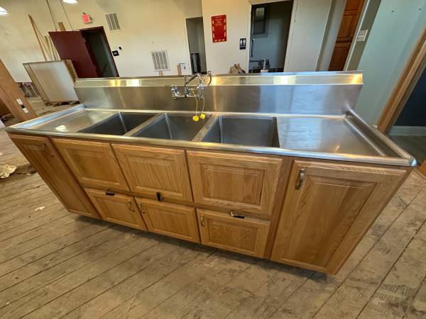 See photos for condition. The sink retails for around $2k, plus the faucet, waste drain valves, and cabinet. Make an appropriate offer. You haul.