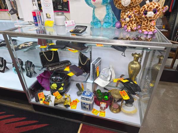Case has led lighting, 4 glass shelfs with brackets(2 not shown in photo), aluminum frame.