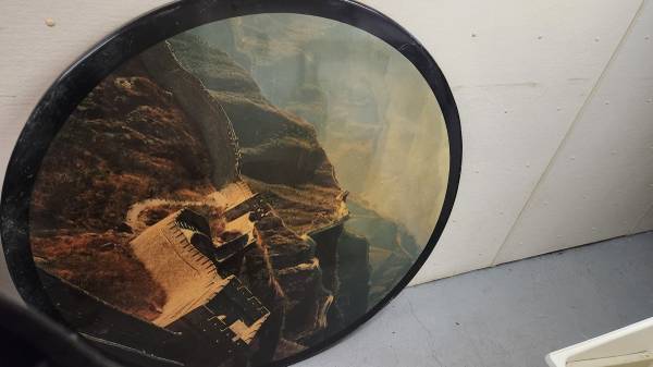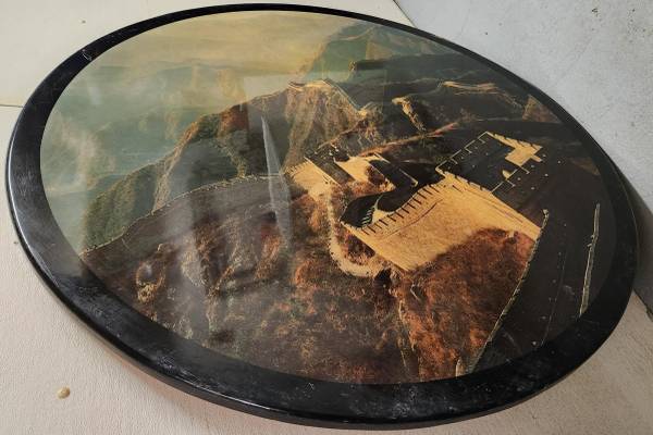 52" Chinese Dining Table with a picture of the Great Wall of China and 36" Lazy Susan With Iron Base