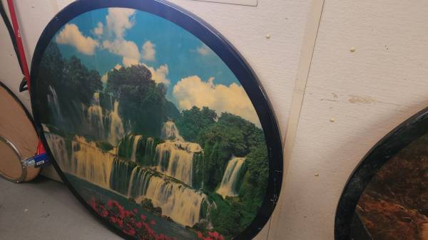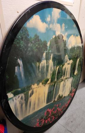 52" Chinese Dining Table with the picture of the The Detian Waterfalls in Daxin County, Chongzuo City, Guangxi, on the Sino-Vietnamese border with Iron Base