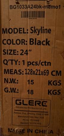 Brand new, in unopened box is a kids 24 inch black Skyline Glerc bike https://www.amazon.com/Glerc-Skyline-Mountain-Bicycle-Suspension/dp/B0DHR7WX5M?th=1&psc=1
