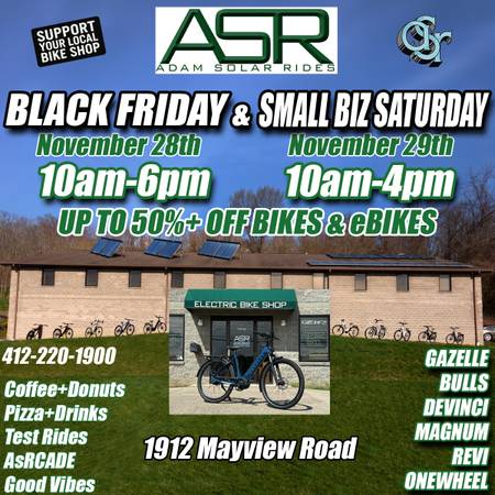 Stop by for deals on wheels. New, Used, and Demo Bikes and eBikes available. Happy Thanksgiving!