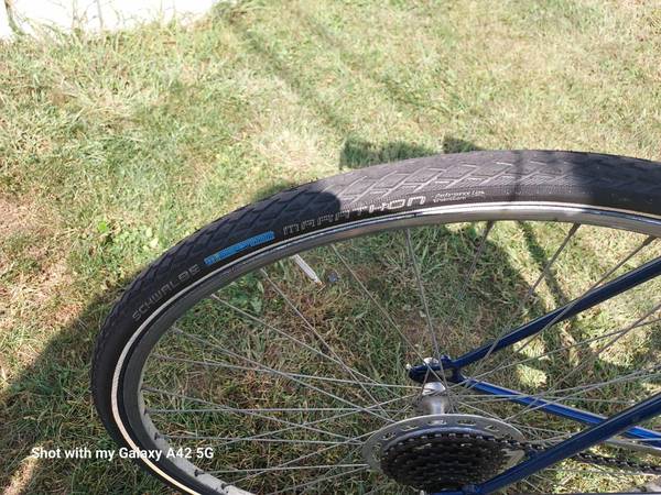 1981 TREK ROAD BIKE IN GREAT SHAPE. RIDES, SHIFTS AND STOPS WELL. NEEDS NOTHING. SOME SCRATCHES (SEE PICS) BUT STILL IN GREAT SHAPE. COLOR IS METALLIC BLUE. SIZE IS ABOUT 59CM ANDDGOOD FOR RIDERS 6' AND TALLER. NEWER TIRES, SADDLE AND BAR WRAP. CHROME MOLY STEEL.