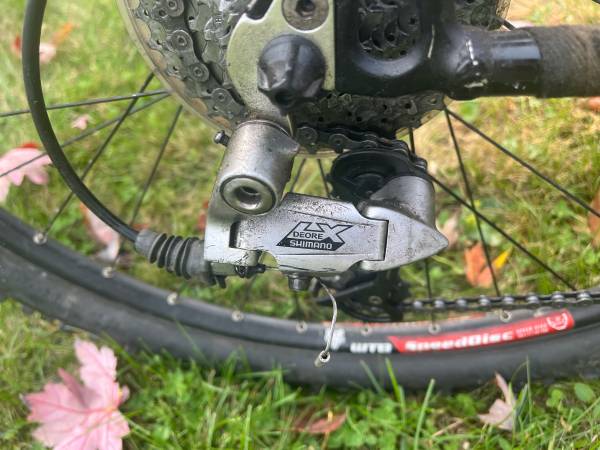 I purchased this bike used when I got into biking several years ago. The bike has been in my garage or shed. I took pictures of the components. The tires are tubeless. Shifters are shimano slx . The rear derailleurs are lx deore