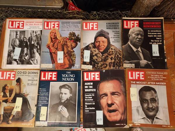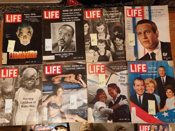 An assortment of "LIFE" Magazines dated from 1968 through 1970 with The Beatles, Nixon, Martin Luther King, etc. and one Life magazine from July 21, 1967 for $10.