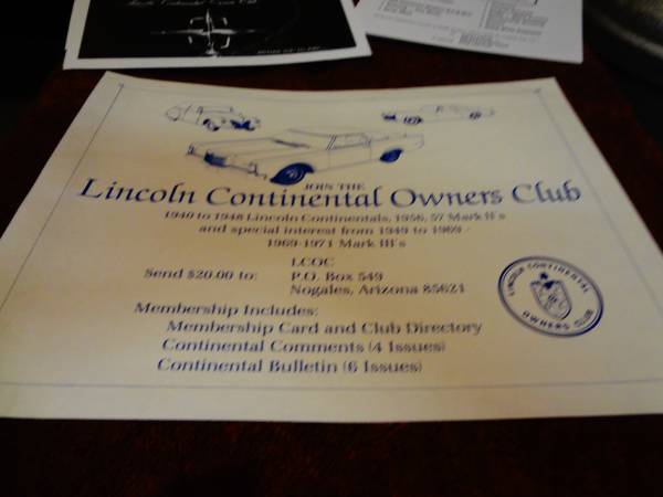 Lincoln Continental Dealer Owners Club Membership Material $10.00 Text or Call