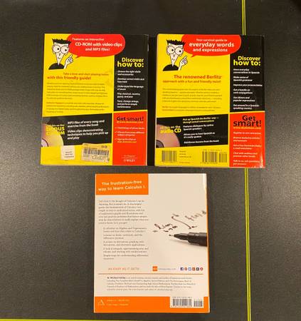$5 each Idiots Guide - Calculus I Spanish for Dummies Violin for Dummies None have been used. Just wear from sitting and moving around.