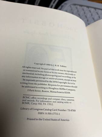 J. R. R. Tolkien's The Hobbit book copyright 1966. In perfect condition. 50th Anniversary Commemorative Gold with Slip Cover edition. Never read.