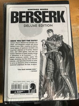 Deluxe Hardcover edition of Berserk Volume 1, mange by Kentaro Miura. Brand new, still in plastic wrap. Beautiful hardcover in black faux leather, with attached bookmark. $20 or best offer. Pickup...