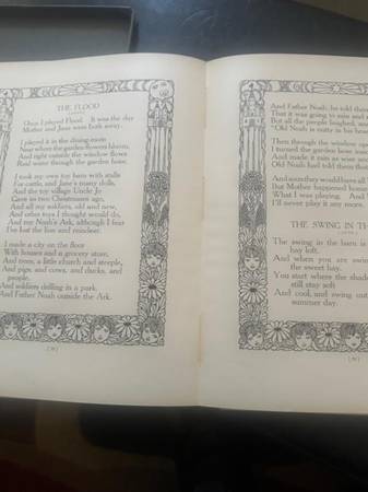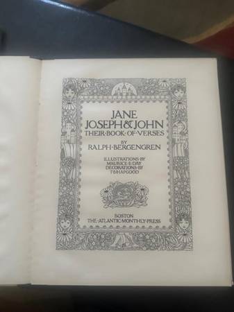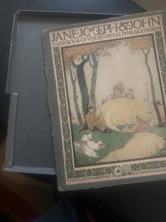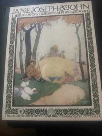 This 1918 book of verses is in good condition. It comes in the original box, although the box is showing its age. Copyright 1918, written by Ralph Bergengren, illustrated by Maurice E Day, and printed by McGrath-Sherrill Press. The book has been in its box since its printing.