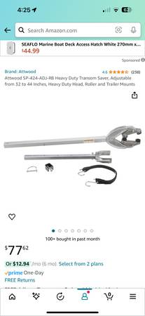 Attwood SP-424-ADJ-RB Heavy Duty Transom Saver, Adjustable from 32 to 44 Inches, Heavy Duty Head, Roller and Trailer Mounts