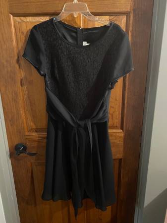 3 cocktail dresses and 1 dress for church, more suited to a teenager. The white dress is size 14, the blue dress is size 12, the black dresses are size 10. Can meet in Greentree, Carnegie, Robinson.