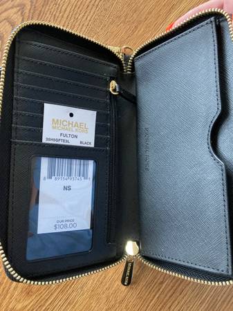 Michael Kors Large Leather Fulton Wallet - 7" x 4" - Black. New with tags, never used. Original price $108. Excellent condition. Contact Jim
