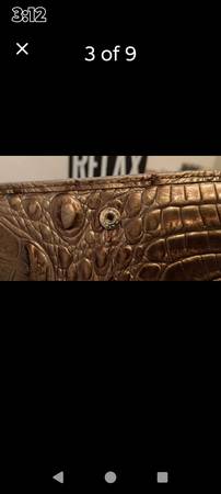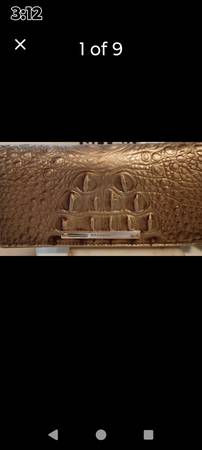 7.5" by 3.5" marked brahim massachusettes. Goldish bronze leather