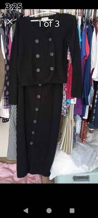 Sz med long skirt lil slit bottom, croppish sweater top, spiegal brand.