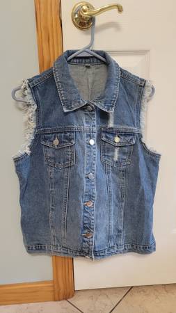 Size:M Stylish jeans vest. Great for layering or to wear as is. Amazon selling for $30. Near worn. Brand new.