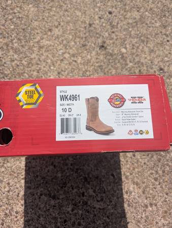 Brand new, never been used Justin Wyoming Waterproof Steel Toe boots, men's size 10.