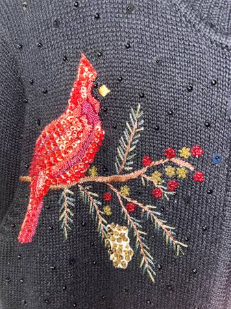 Vintage Christmas Sweater Cardinals Kitschy Embellished Sequins Sz L...
