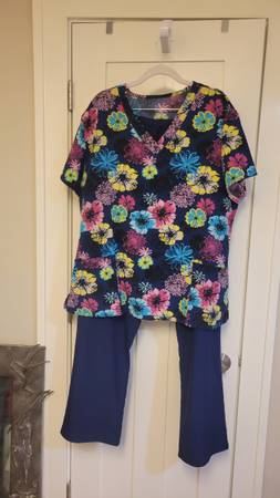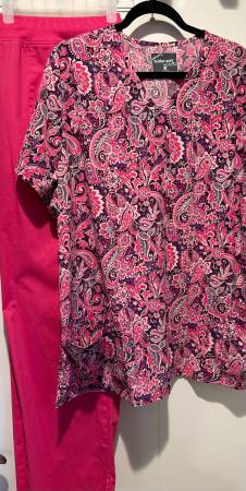 The scrub tops are mostly from a company called Butter Soft Core Scrubs. A few are from Cherokee. The tops were typically $28 each. A few were $30. I did not want solids since everyone wears solid so if I had to wear scrubs, I wanted something different. They are a 2xlg because I don't like things tight. I am selling them only as shown. The last few pictures show how different color pants match the different tops. If you would like to have a look in person, please let me know so we can arrange a time for you to do that.
