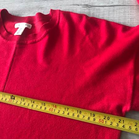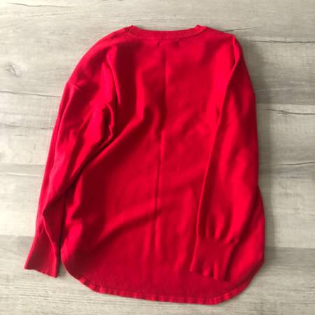 Preowned Good condition Size Medium Red Crew neck Measurements laying flat in the pictures Pet hair and smoke free item