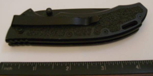 The Schrade SCH201TS Tactical Tanto folder features a black aluminum handle with textured rubber grip inserts, lanyard hole and tip-down carry pocket clip. The tanto style blade has a partially serrated edge and dual thumb studs for one-hand opening.
