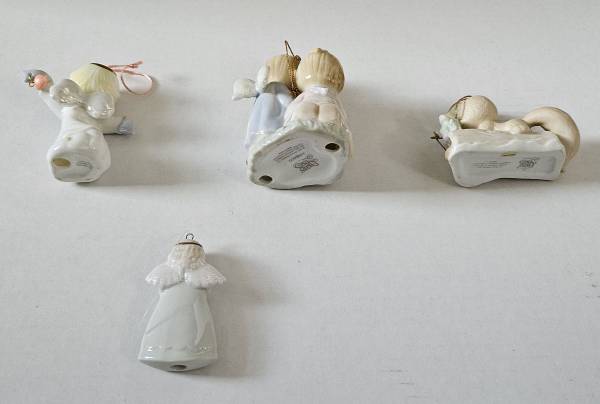 I have 4 retired Christmas Ornaments. 2 - Precious Moments 1 - September Angel 1 - Peace on Earth No boxes, but all 4 are bubble wrapped. These are in like-new condition. Pickup is inside the Van...