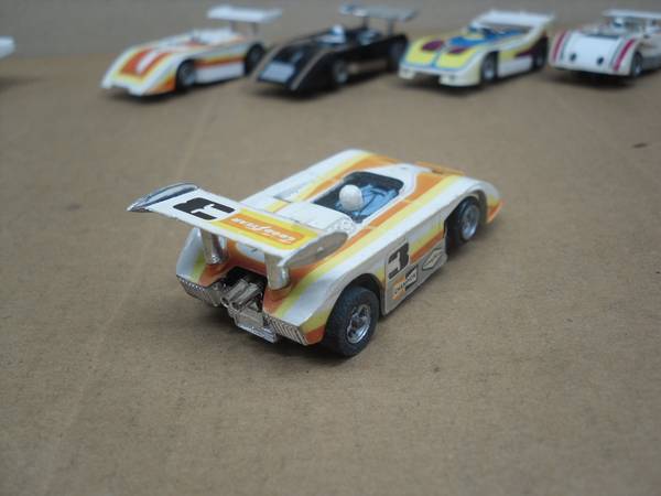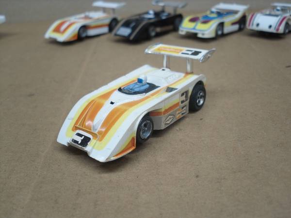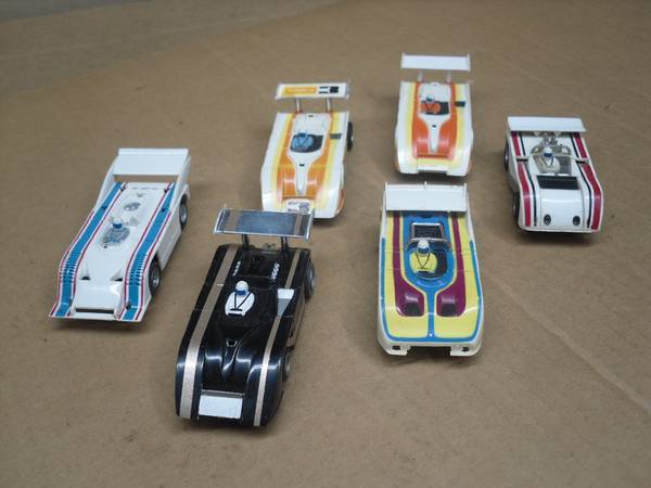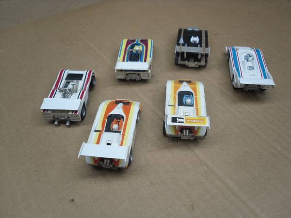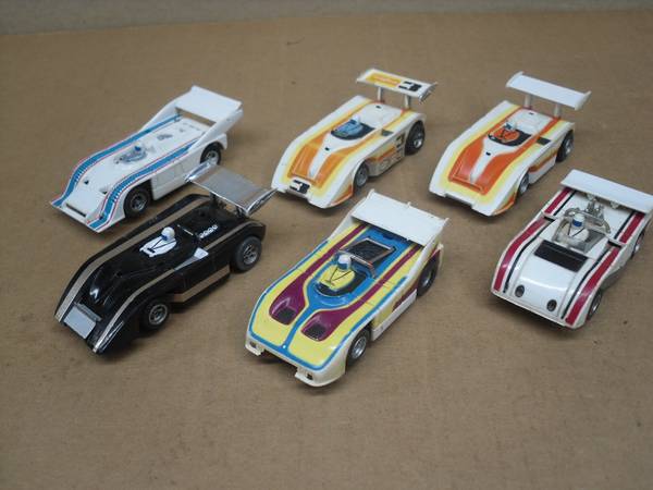 Here are 6, Aurora AFX HO scale slotcars all in racing condition.