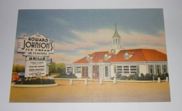 1940s Howard Johnson's 28 Flavors Postcard Linen and Unused. VERY GOOD condition. $5.00