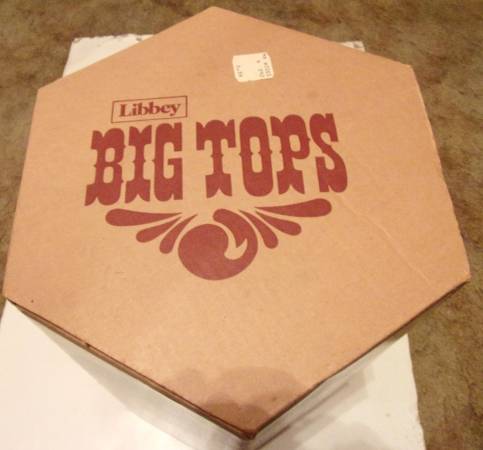 1970s Libbey Big Tops Elephant Cookie Jar Container New In Box. I have taken out to show the jar. Purchased at a store called Mr. Wiggs and original retail sticker was $6.39 Brown color. The glass...