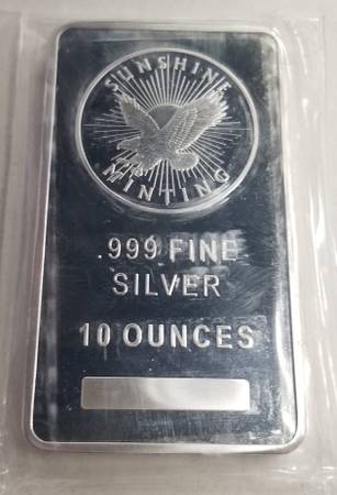 10 Troy Ounce .999 Fine Silver Bar in original plastic.