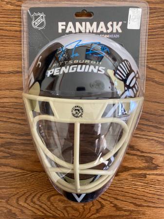 Marc Andre Fleury Pgh Penguins Autographed Fanmask - approx 10-1/2 x 7-1/2 - New in package - Excellent condition. Contact Jim