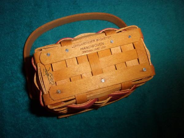LONGABERGER 2001 INAUGURAL BASKET AND OTHER 5 3/4 X 3 3/4 X 4 HIGH BASKET, LINER, PAPERWORK
