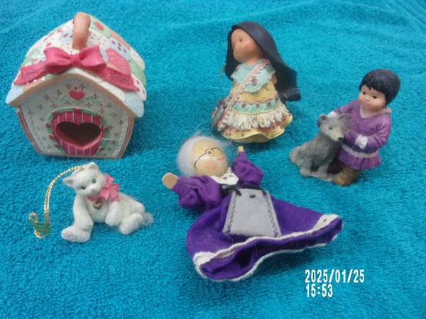 TOY ANIMALS AND OTHER (13) CHIMP AND 2 BABIES CHIMP GORILLA AND 2 BANNA’S GORILLA AND 1 BANNA GIRAFFE GIRAFFE AND BABY LION CUB BIRD OTHER INDIAN DANCER ESKIMO AND DOG CAT HOUSE CAT WOOD HEAD WOMAN...