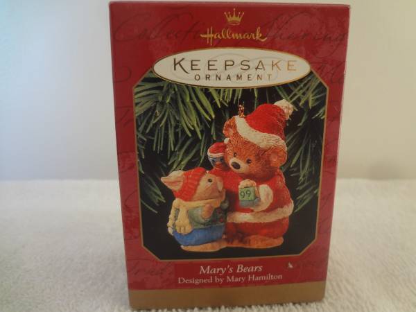 Hallmark Ornament, in original box, NEVER opened. "Mary's Bears,"1999 issue. If interested send your phone number and I will call you.