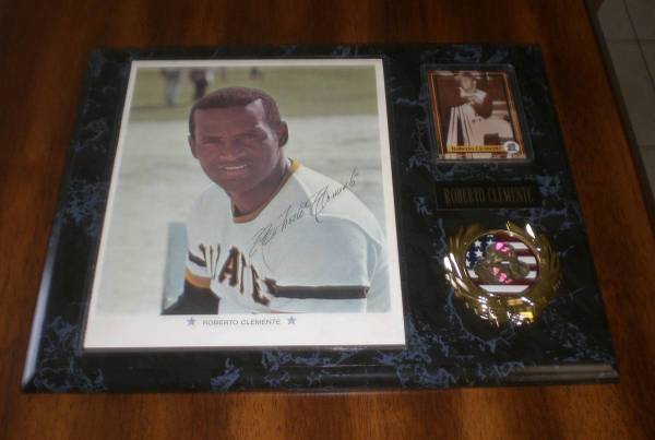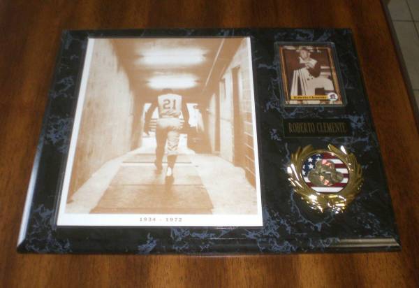 NEW - This is a 12" x 15" decorative plaque honoring Pittsburgh Pirates legend and Hall of Famer Roberto Clemente. Nice plaque for a true Clemente fan. Call between 9 am - 9 pm