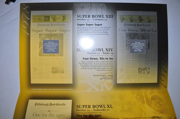 No Medallion The 2006 Pittsburgh Steelers Super Bowl Medallion Champions Collection Holder is a officially licensed product featuring the colors of the NFL team, the Pittsburgh Steelers. This medallion display is a unique way for fans to commemorate the Steelers' championship win in Super Bowl XL. Made in the United States, this collection holder is a perfect addition to any Steelers fan's memorabilia collection. No Medallion