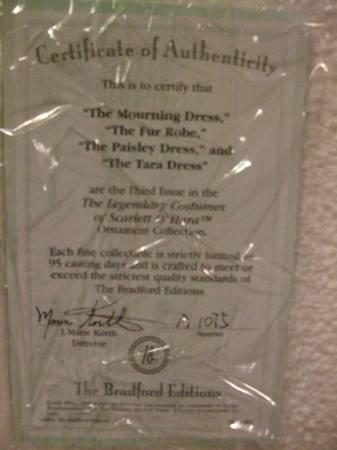 3rd Issue Bradford Exchange Gone With The Wind Ornaments "The Mourning Dress" "The Fur Robe" "The Paisley Dress" "The Tara Dress" Will Meet Locally. Cash Only.