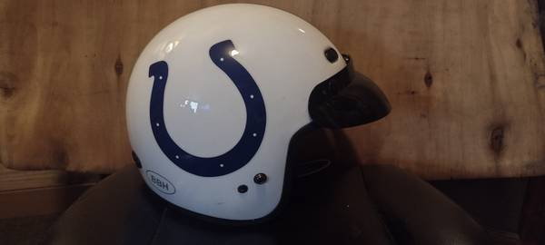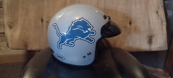 Rare NFL licensed D.O.T. motorcycle helmet (Large). These helmets do show signs of being moved around after the years. Some may have "bubbling" under the helmet film. UnUsed,Old stock helmets