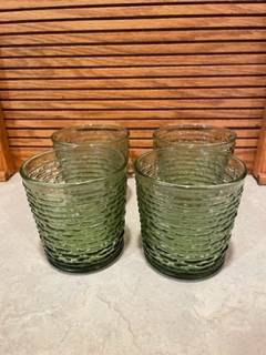 I have a 1960's 5 piece set of Anchor Hocking Fire King Soreno Avocado Green Pitcher and Juice Beverage Glasses, The set is in mint condition. No signs of chips or cracks. The small pitcher holds 24 ounces and each glass holds 8 ounces. The pitcher is 7"T and each glass is 3-/4"T. Call or text Nonie at show contact info