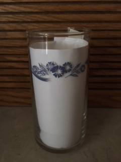 8 Corelle Corning Pyrex Blue Cornflower Glasses Tumblers RARE - they are all clear glass with the blue cornflower pattern. I put the white paper in a glass to show the pattern better. No chips - 16 Ounce - Easy directions from I-79, Rt, 422 or Rt. 68 - cash only - call Nonie show contact info