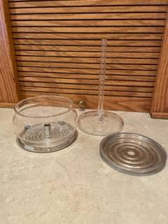 I have a vintage Pyrex 9 Cup Class Flameware Coffee Pot Percolator 7759. It is in excellent condition. No chips or fading. The set is conplete as you can see in the photos. Call or text Nonie at show contact info