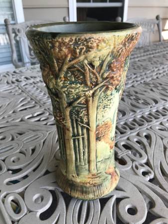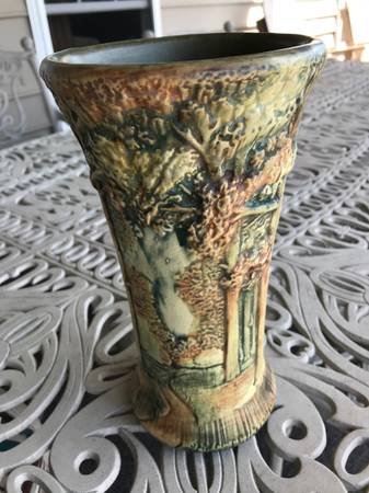 • Weller Forest 1920s Vintage Art Pottery Scenic Landscape Vase