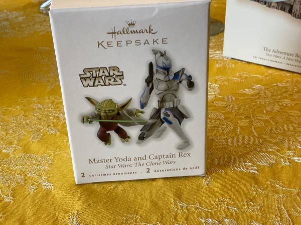Hallmark Star Wars ornaments. Yoda and Rex. MILLENNIUM FALCON works! - sound and light! In original packaging.